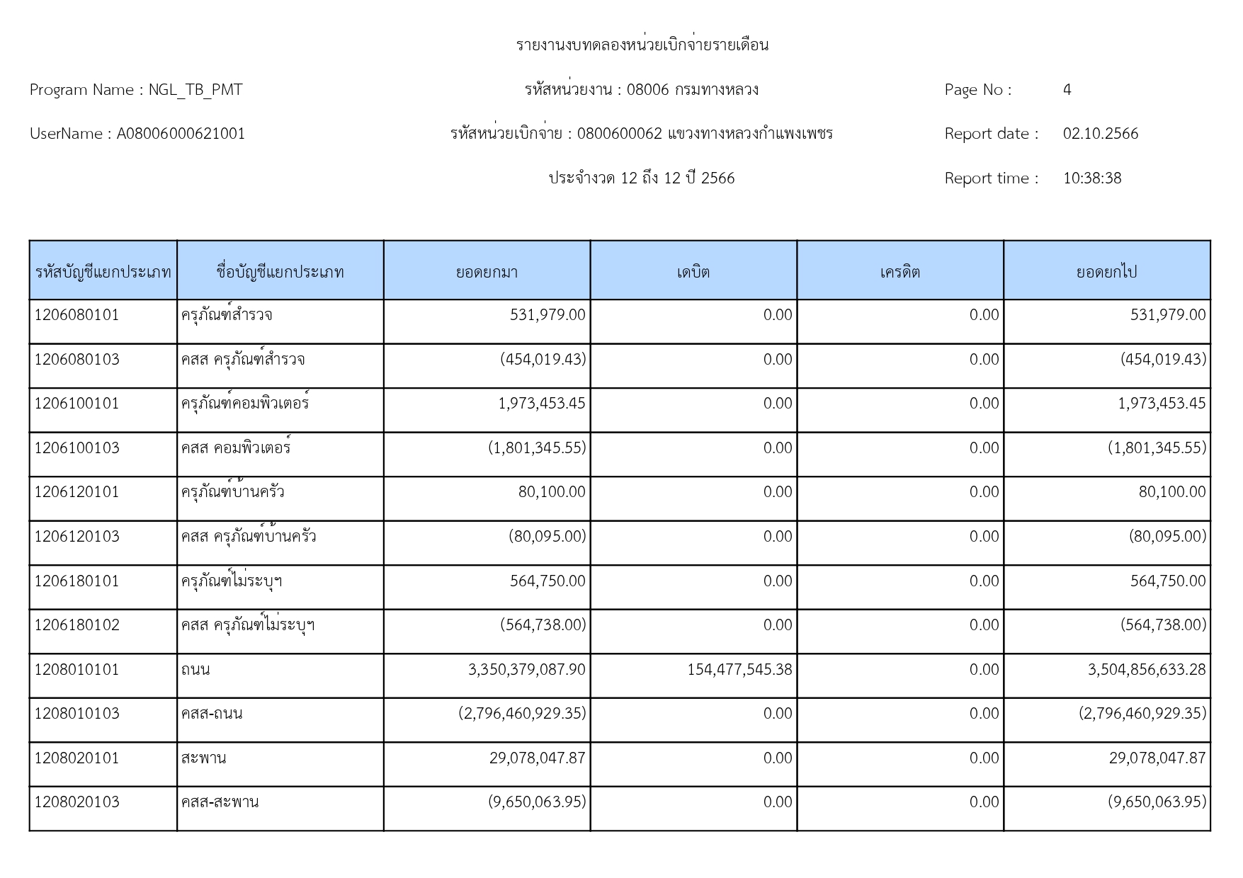 แขวงทางหลวงกำแพงเพชร แจ้งประชาสัมพันธ์รายงานงบทดลอง ประจำเดือน กันยายน 2566