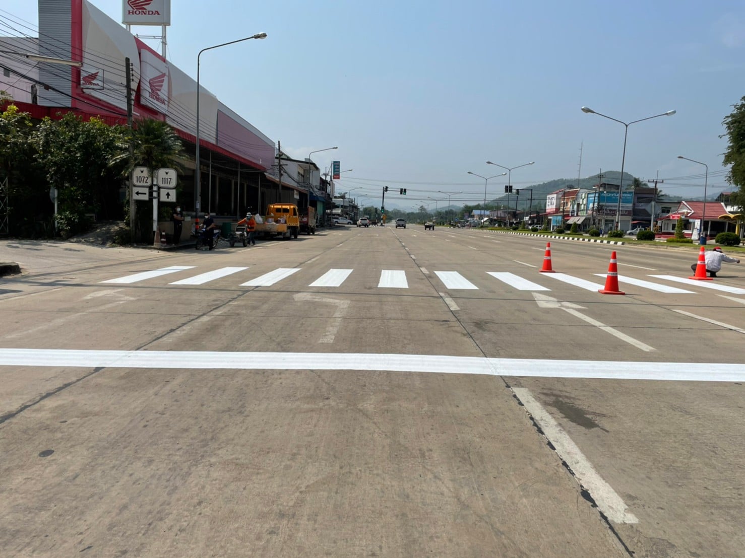 แขวงทางหลวงกำแพงเพชร ดำเนินการปรับปรุงทางม้าลาย โดยดำเนินการตีเส้นและทำความสะอาด เพื่อความปลอดภัย และเพื่อป้องกันอุบัติเหตุบนทางหลวง