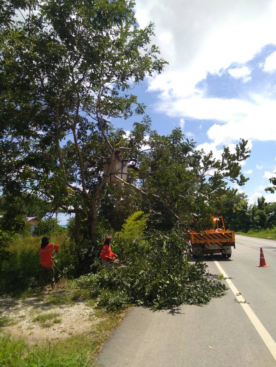 แขวงทางหลวงกำแพงเพชร โดยหมวดทางหลวงโกสัมพีนคร จัดเจ้าหน้าที่เพื่อเฝ้าระวังบริเวณไหล่ทางที่ถูกน้ำกัดเซาะ ทางหลวงหมายเลข 1109 ตอน วังเจ้า-โละโคะ ที่ กม.20+100 (ด้านซ้ายทาง)