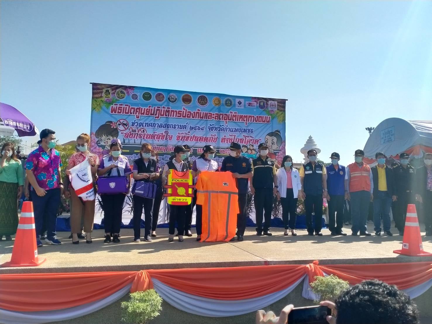 นายชัยศิริ ผูกใจเพื่อน ผู้อำนวยการแขวงทางหลวงกำแพงเพชร เข้าร่วมกิจกรรมรณรงค์ป้องกันและลดอุบัติเหตุทางถนนช่วงเทศกาลสงกรานต์ 2564