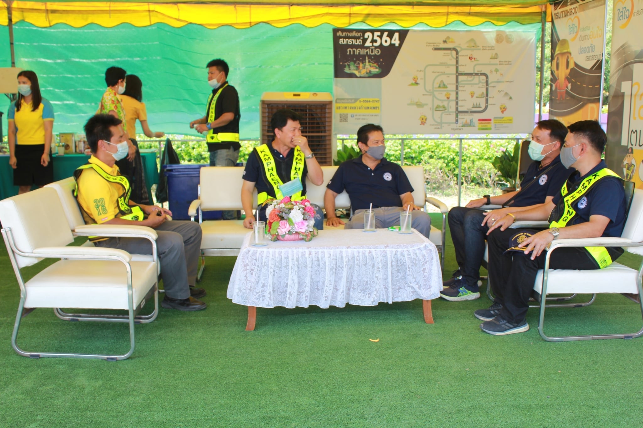 วันที่ 9 เมษายน 2564 นายกฤตภาส อุตรวีระการ รองผู้อำนวยการสำนักงานทางหลวงที่ 4 พร้อมเจ้าหน้าที่สำนักงานทางหลวงที่ 4 ตรวจเยี่ยมและมอบเครื่องดื่ม เพื่อเป็นขวัญกำลังใจให้กับเจ้าหน้าที่ที่ปฏิบัติงานให้บริการอำนวยความสะดวกและปลอดภัยช่วงเทศกาลสงกรานต์ 2564 ณ จุดบริการทั่วไทยแขวงทางหลวงกำแพงเพชร และหมวดทางหลวงคลองลานพัฒนา