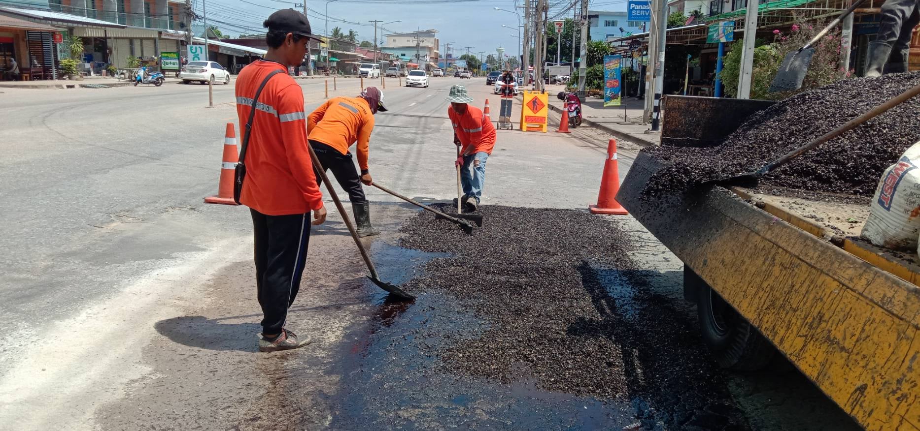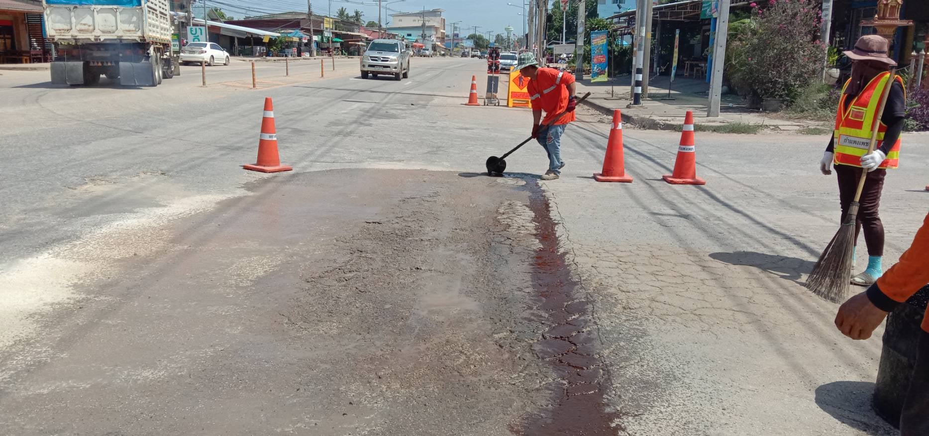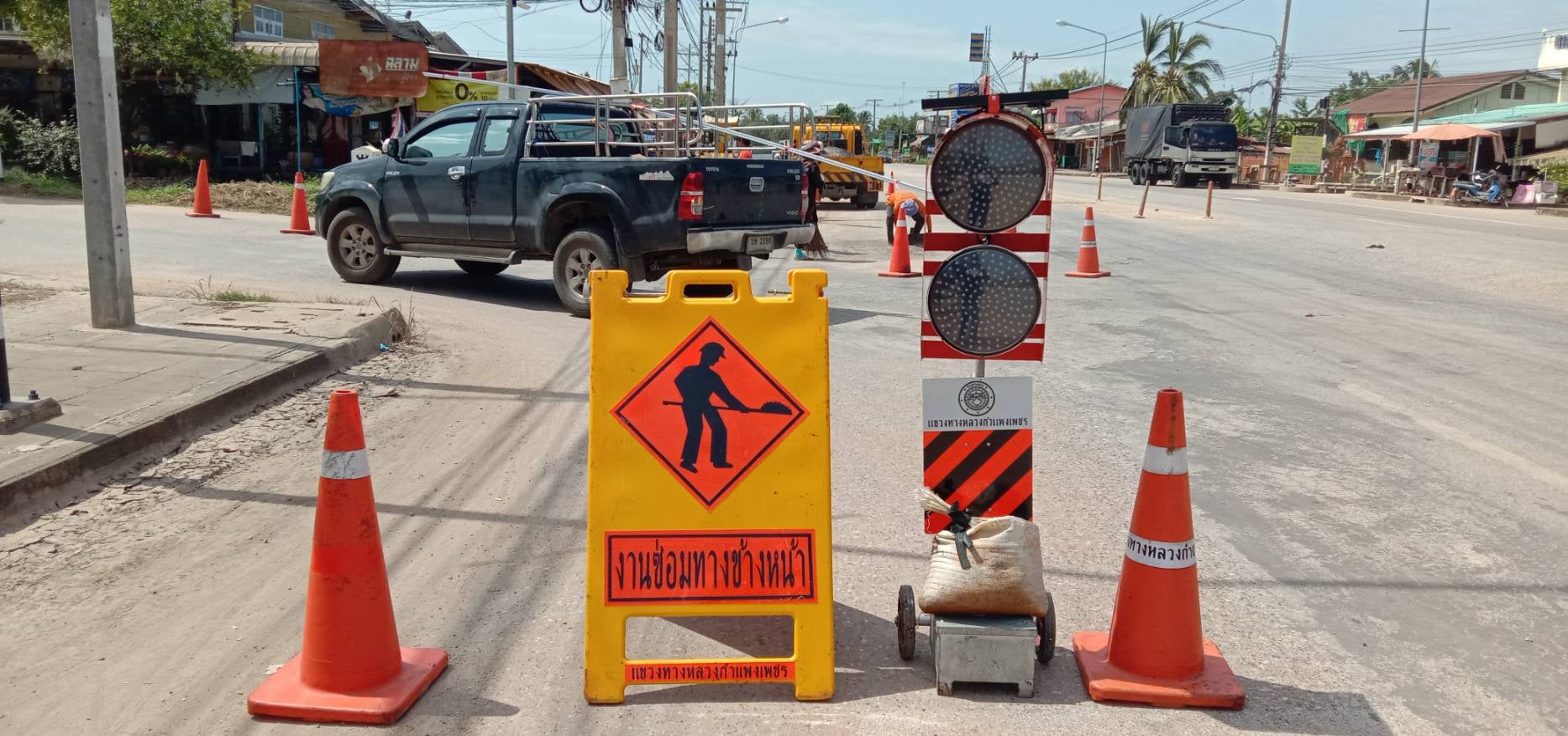 แขวงทางหลวงกำแพงเพชร โดย หมวดทางหลวงคณฑี ดำเนินการปะซ่อมผิวทาง ทางหลวงหมายเลข 1084 ตอน หาดชะอม - กำแพงเพชร ระหว่าง กม.93+800 - กม.93+900 เพื่อให้ความสะดวก และปลอดภัยแก่ผู้ใช้เส้นทาง