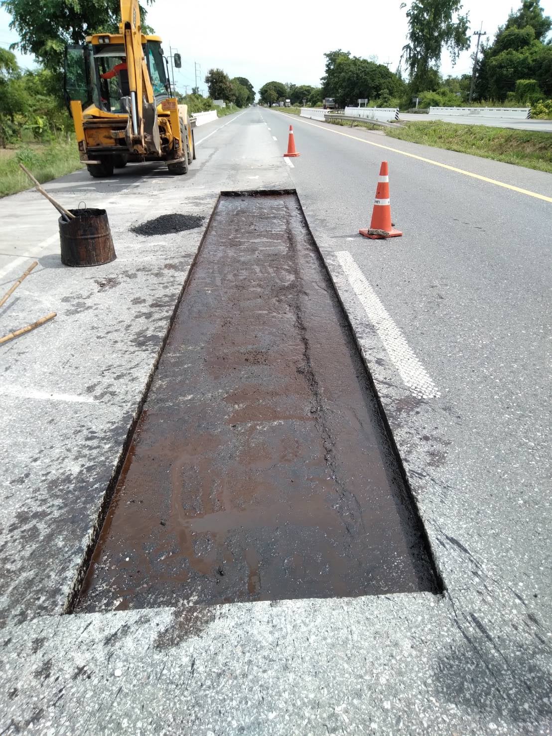 แขวงทางหลวงกำแพงเพชร โดย หมวดทางหลวงคลองขลุง, หมวดทางหลวงคลองลานพัฒนา ดำเนินการปะซ่อมผิวทาง ทางหลวงหมายเลข 1 ตอนโนนปอแดง - ปากดง ระหว่าง กม.408+625 - กม.408+630 และทางหลวงหมายเลข 1117 ตอน คลองแม่ลาย - อุ้มผาง ระหว่าง กม.1+200 - กม.1+300 เพื่อให้ความสะดวก และปลอดภัยแก่ผู้ใช้เส้นทาง