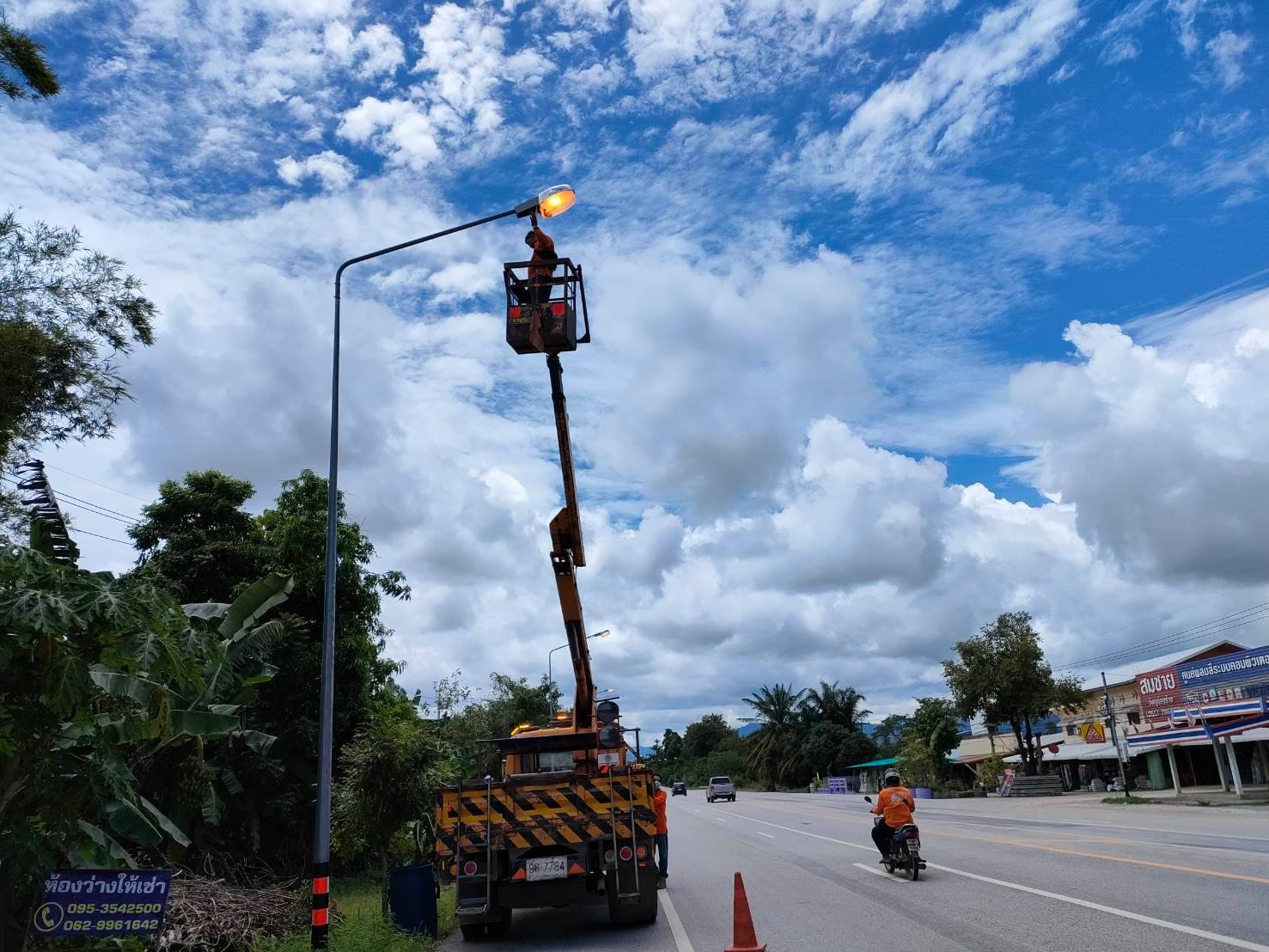 แขวงทางหลวงกำแพงเพชร โดย งานปรับซ่อม ดำเนินการซ่อมแซมไฟฟ้าแสงสว่าง ทางหลวงหมายเลข 1117 ตอน คลองแม่ลาย - อุ้มผาง ระหว่าง กม.35+307 - กม.37+800 เพื่อความสะดวก และความปลอดภัยแก่ผู้ใช้เส้นทาง