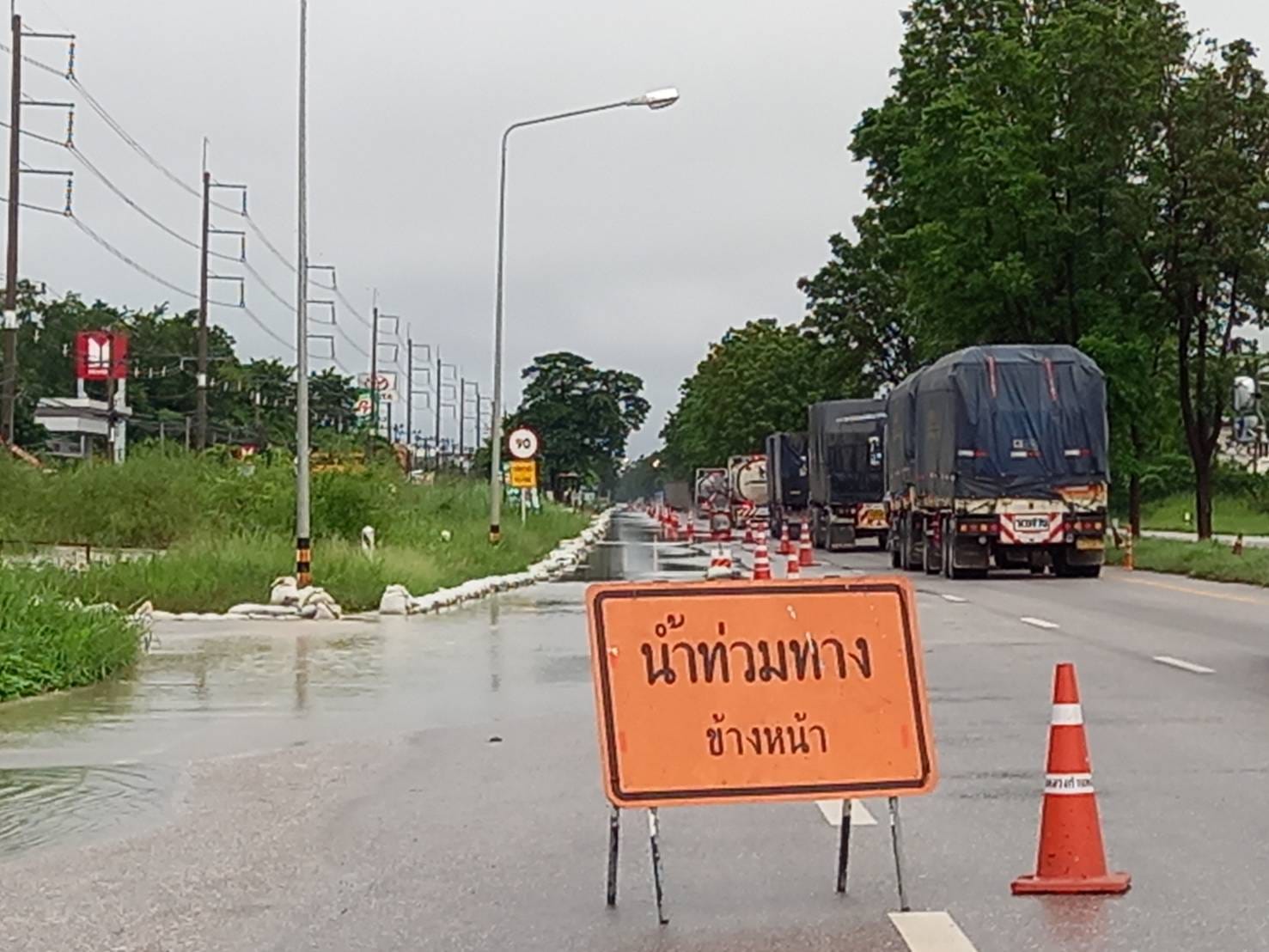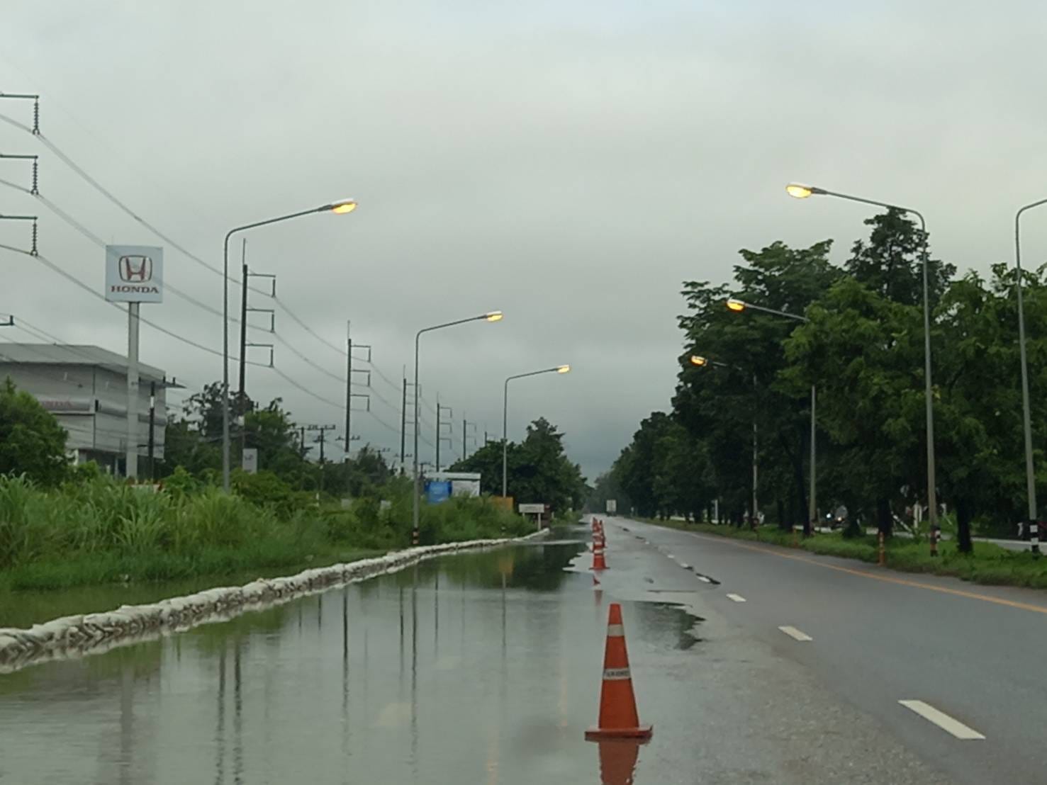 - น้ำท่วมผิวทางจราจร ความสูง 13 ซม.