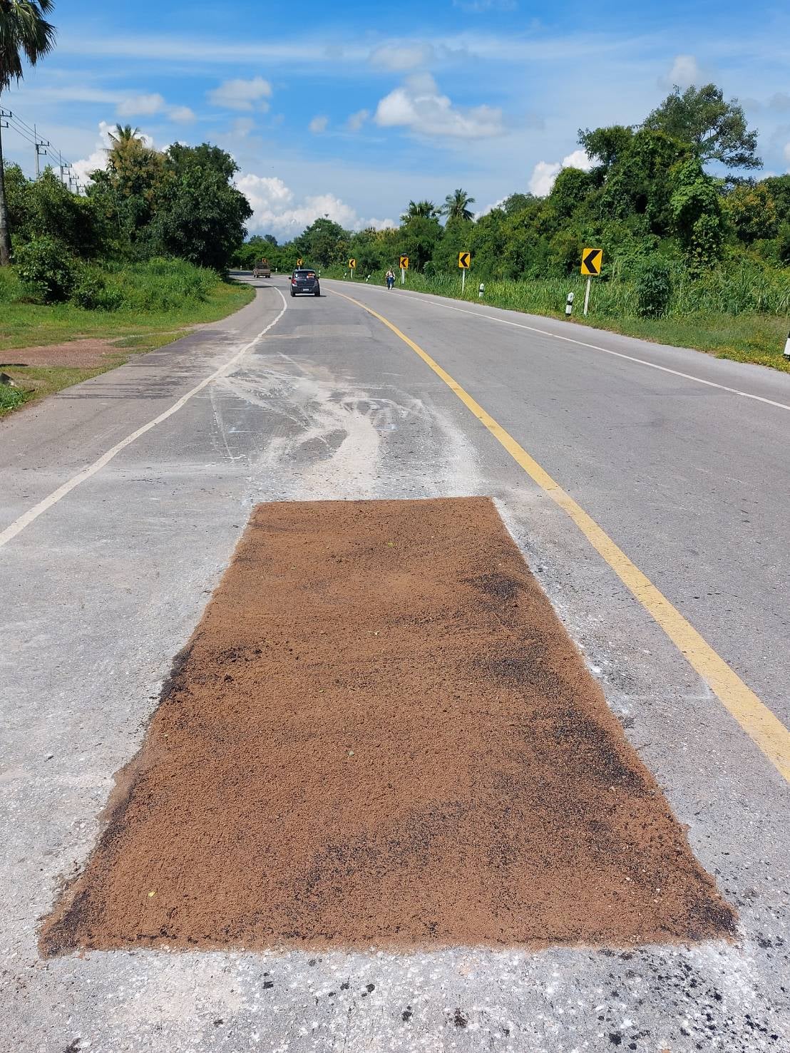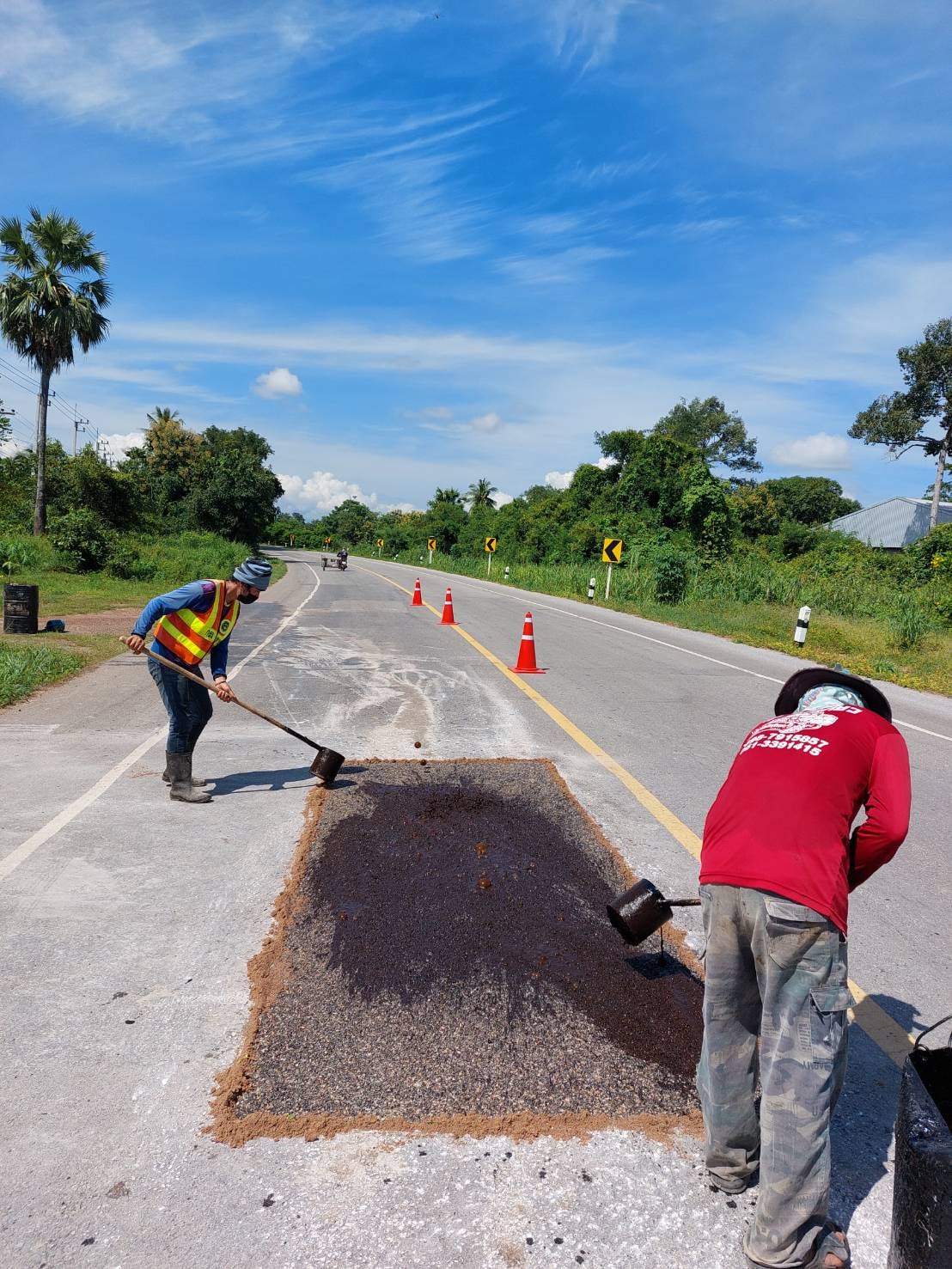 แขวงทางหลวงกำแพงเพชร โดย หมวดทางหลวงปากคลองลาน ดำเนินการปะซ่อมผิวทาง ทางหลวงหมายเลย 1242 ตอน โค้งวิไล - เขาน้ำอุ่น ที่ กม.20+810 และ กม.20+850 เพื่อให้ความสะดวก และปลอดภัยแก่ผู้ใช้เส้นทาง