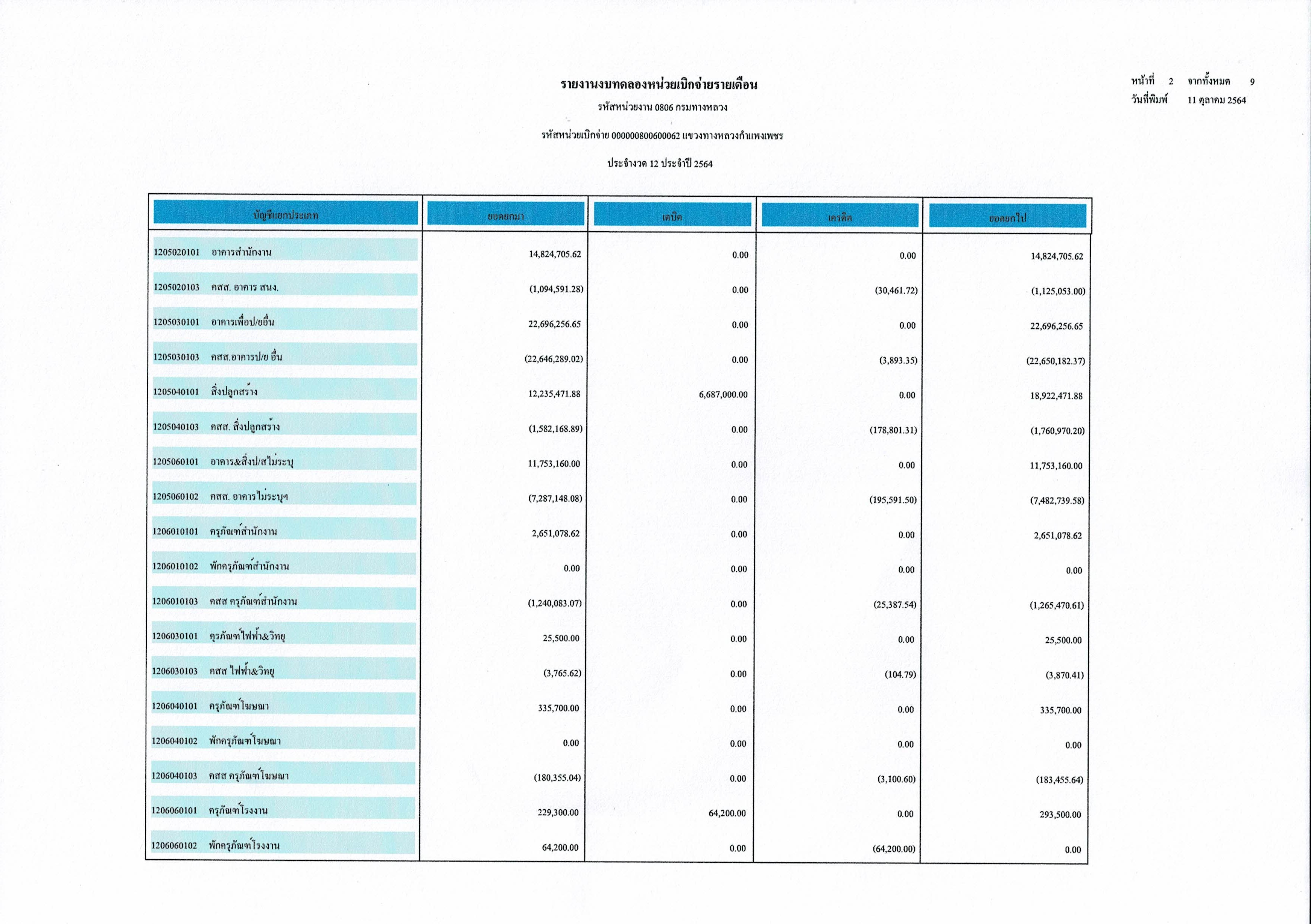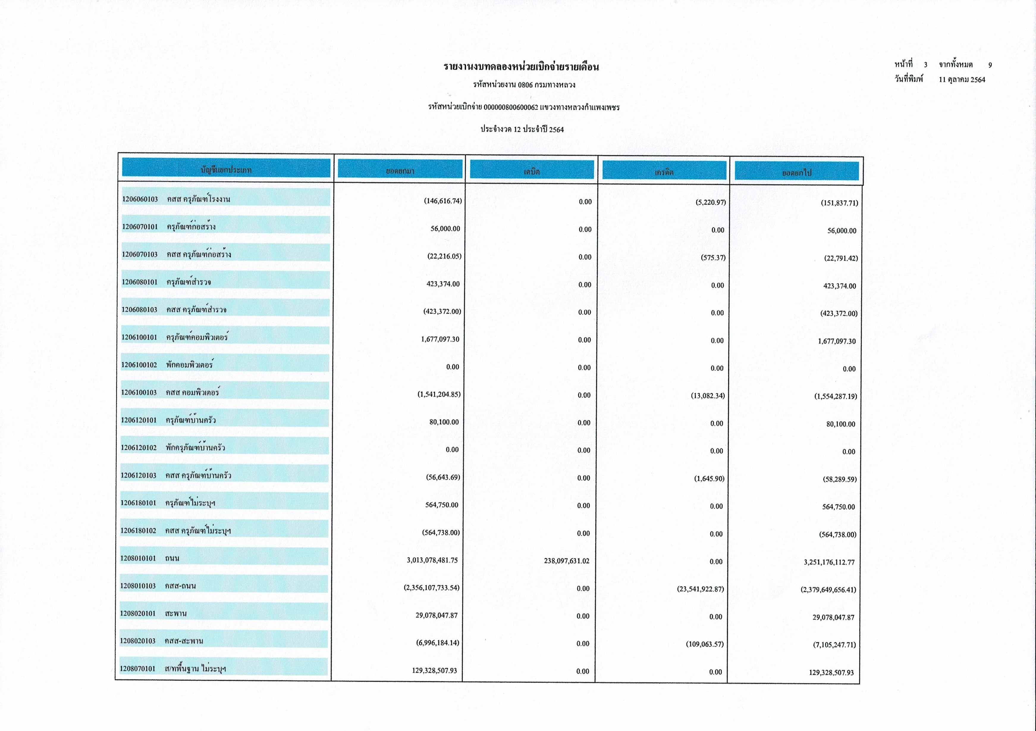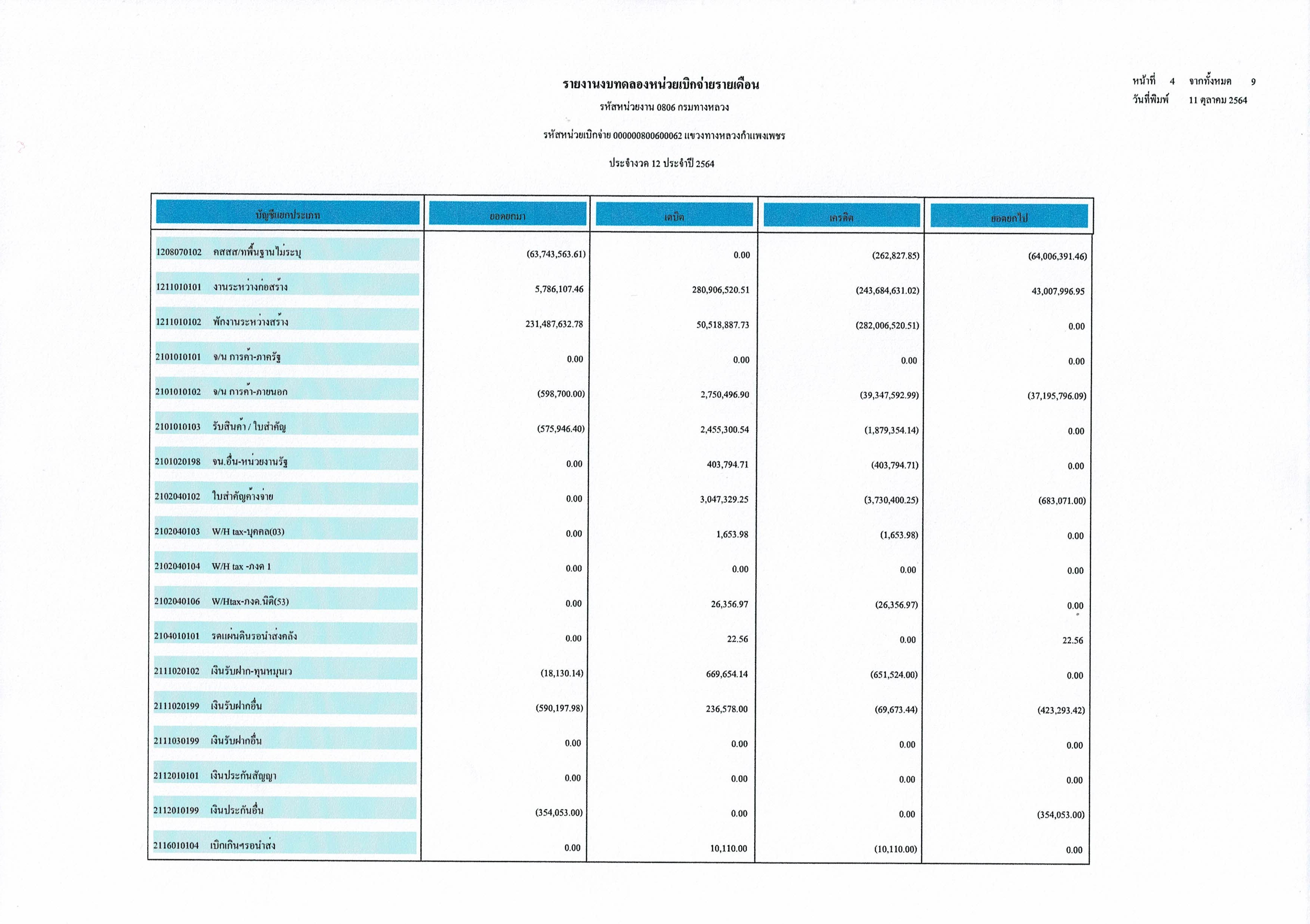 แขวงทางหลวงกำแพงเพชร แจ้งประชาสัมพันธ์รายงานงบทดลองปีงบประมาณ 2564