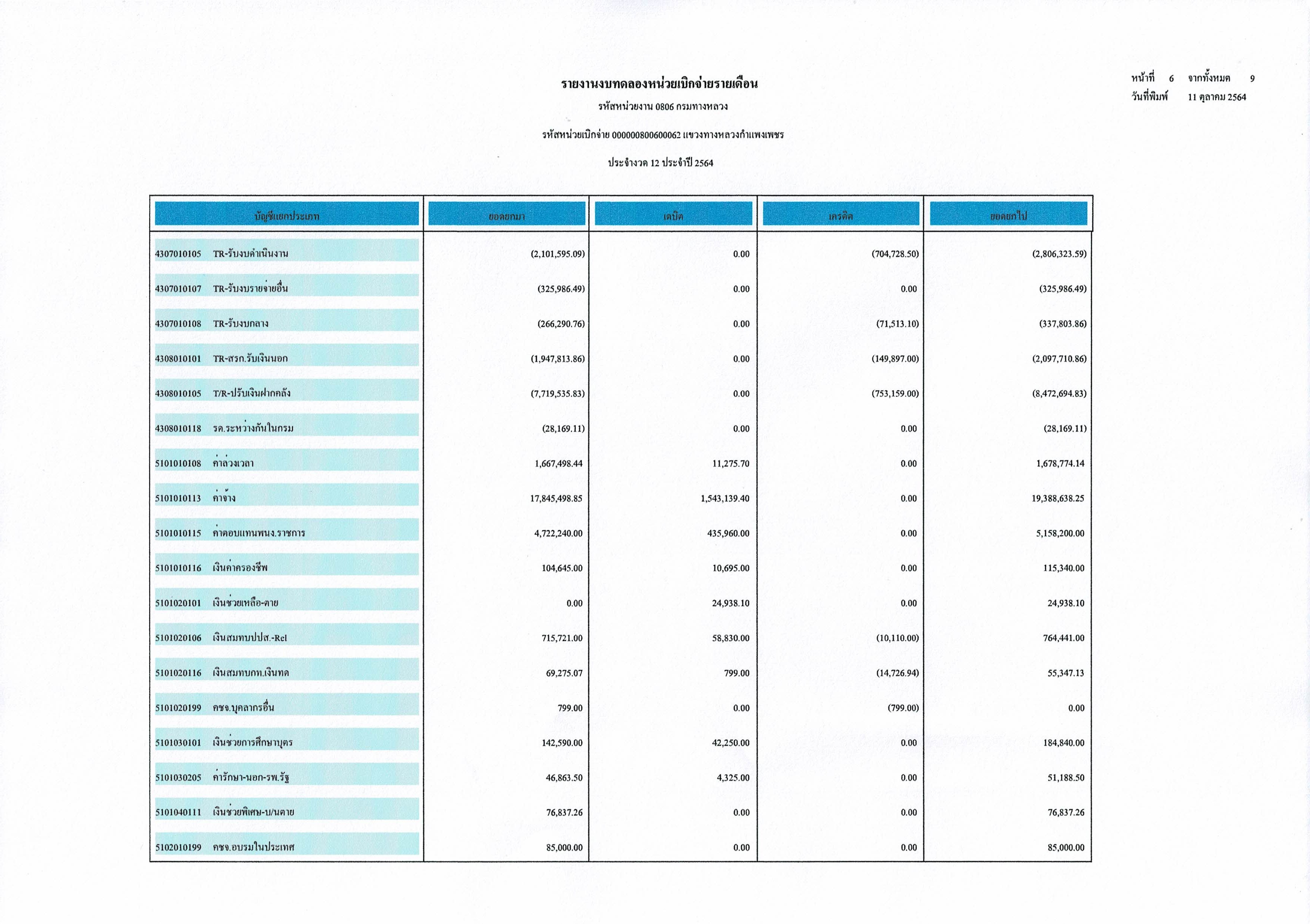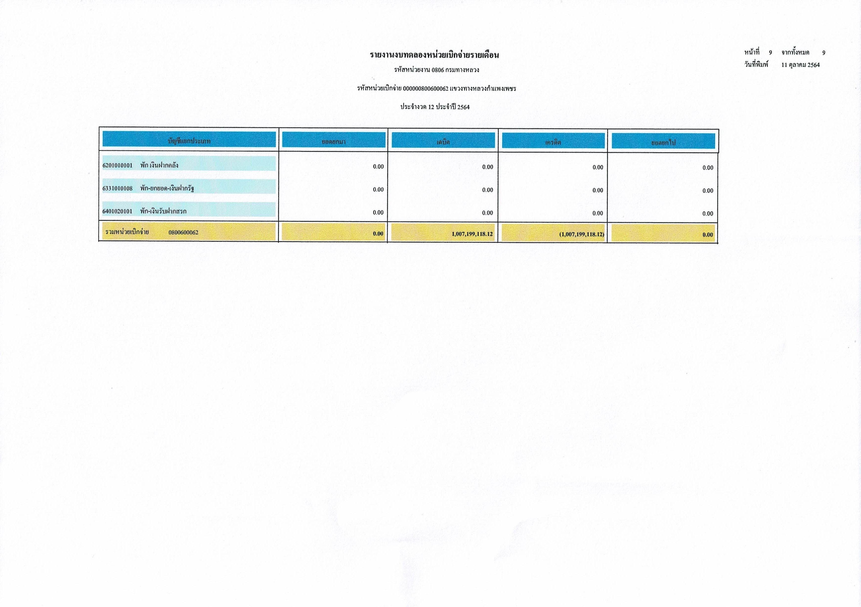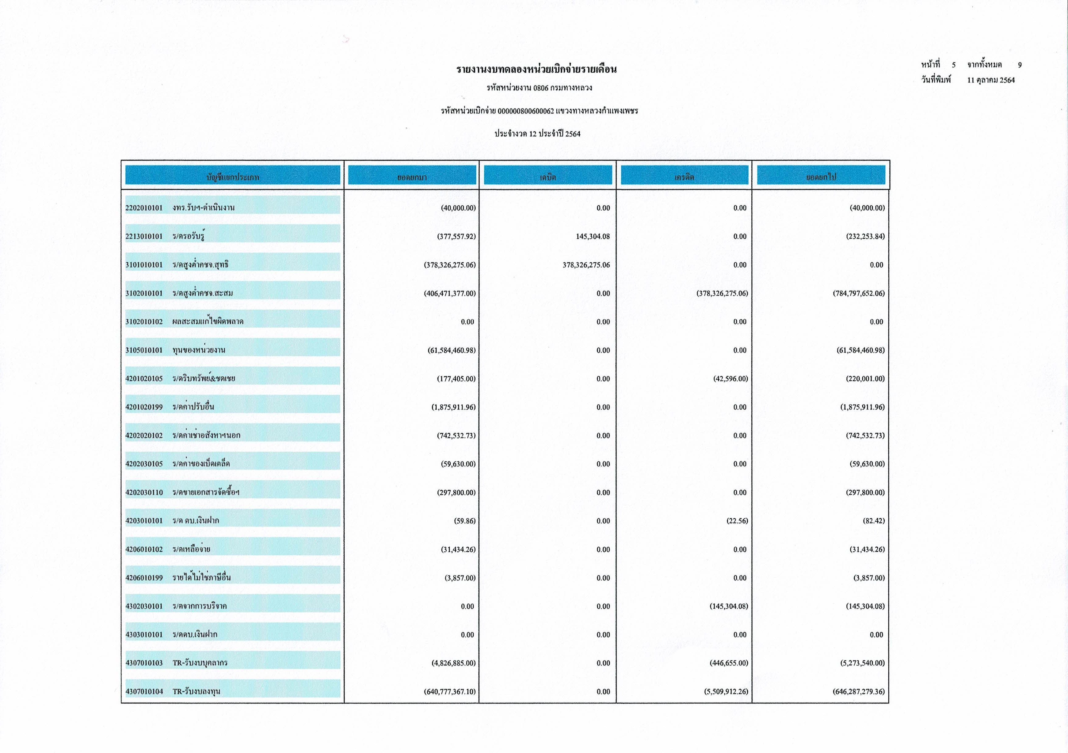 รายงานงบทดลองหน่วยเบิกจ่ายรายเดือน