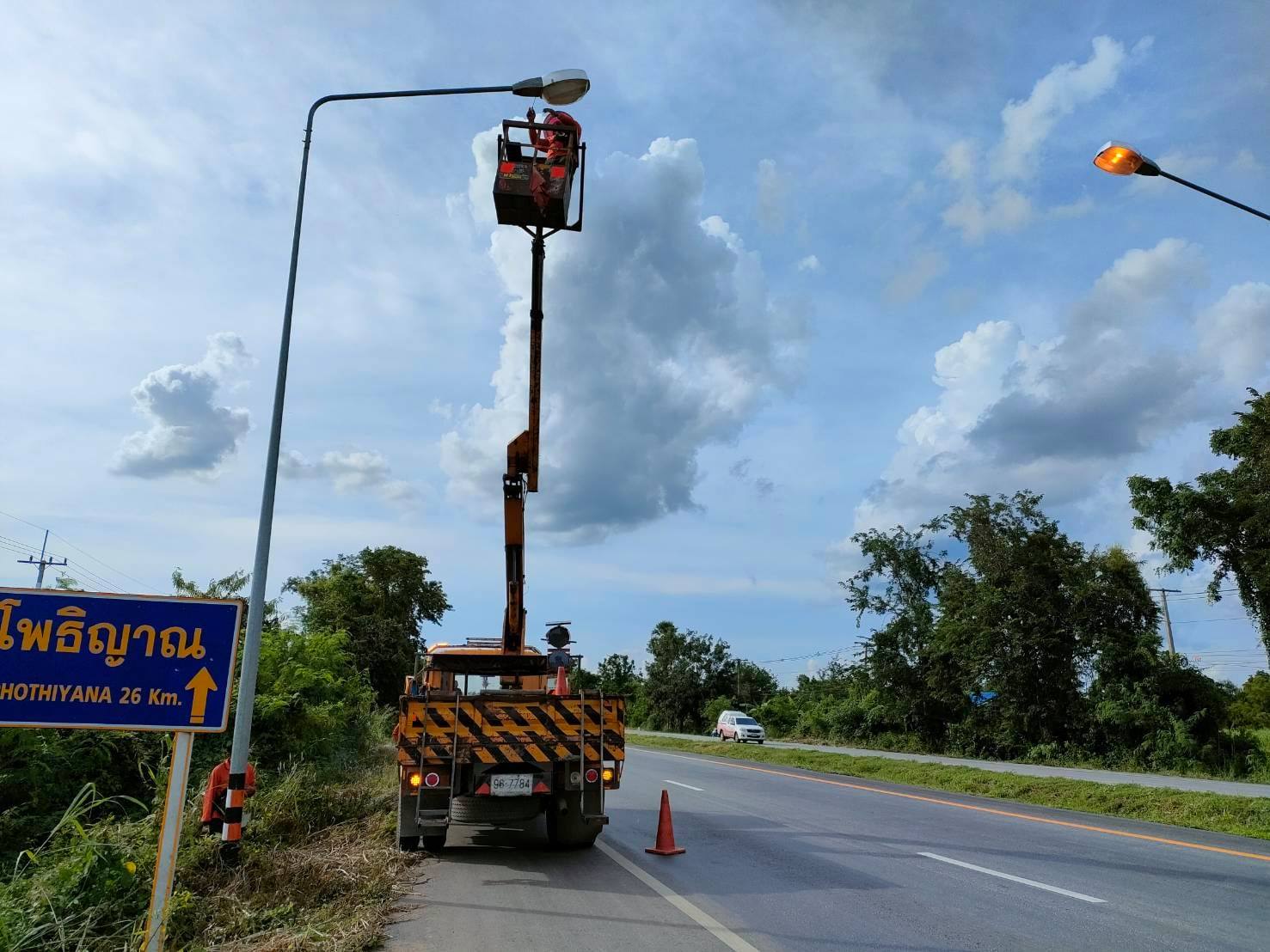 แขวงทางหลวงกำแพงเพชร โดย งานปรับซ่อม ดำเนินการซ่อมแซมเปลี่ยนอุปกรณ์ไฟฟ้าแสงสว่าง ทางหลวงหมายเลข 1 ตอน โนนปอแดง - ปากดง ระหว่าง กม.429+353 - กม.429+600 เพื่อความสะดวก และความปลอดภัยแก่ผู้ใช้เส้นทาง