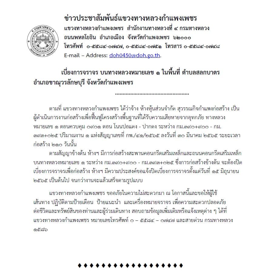 ข่าวประชาสัมพันธ์แขวงทางหลวงกำแพงเพชร