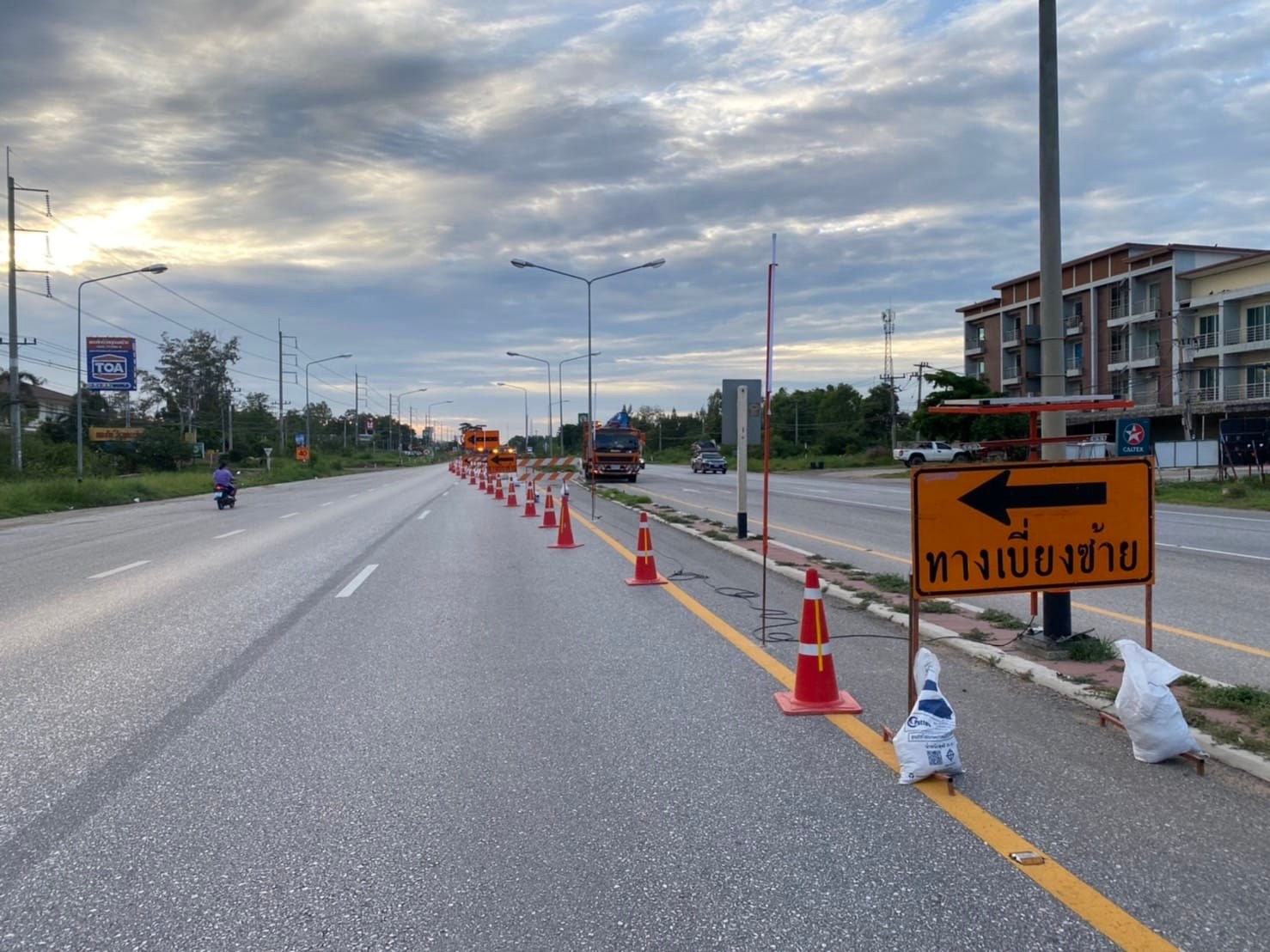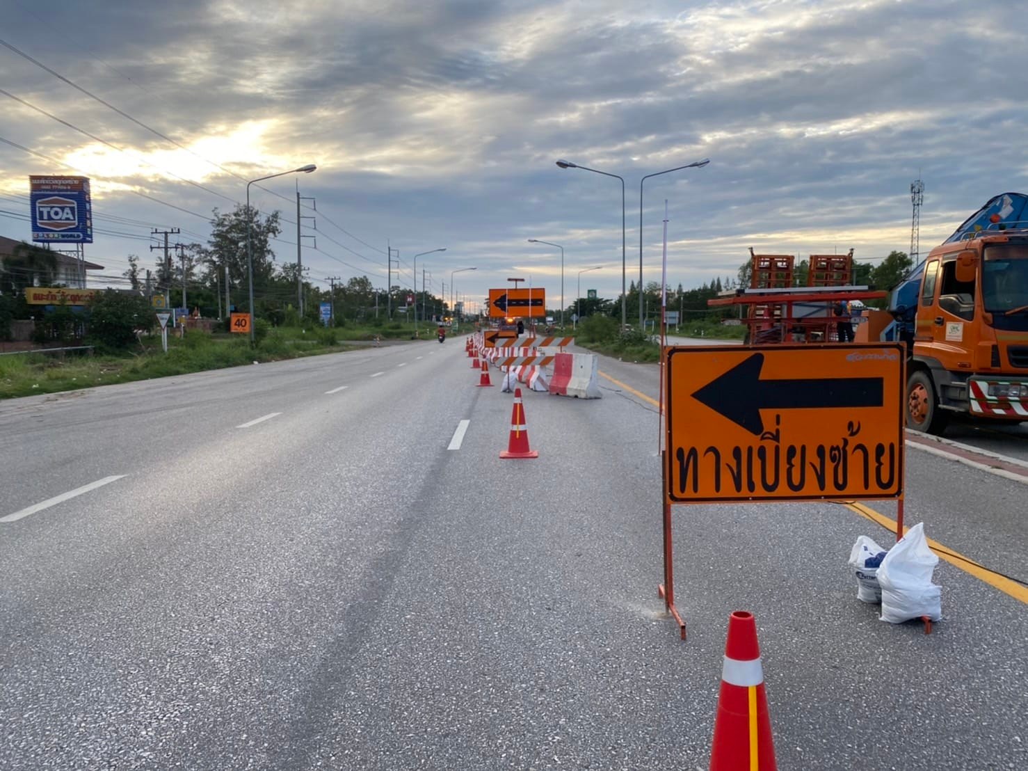 ตามสัญญาข้างต้น ห้างฯ มีการก่อสร้างสะพานคอนกรีตเสริมเหล็กและถนนคอนกรีตเสริมเหล็ก บนทางหลวงหมายเลข 1 ระหว่าง กม.390+900 - กม.393+025 ซึ่งการก่อสร้างข้างต้น จะต้องปิดเบี่ยงการจราจรเพื่อก่อสร้าง ห้างฯ มีความประสงค์ขอแจ้งปิดเบี่ยงการจราจรตั้งแต่วันที่ 15 มิถุนายน 2565 เป็นต้นไป จนกว่างานจะแล้วเสร็จตามรูปแบบ